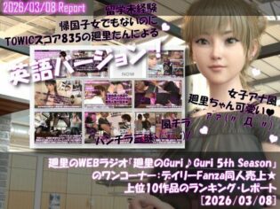 【レビュー】〖Libido-Labo〗『【▲20】英語★廻里の自撮りWEBラジオ『廻里のGuriGuri(グリグリ)5thシーズン』のワンコーナー:デイリーFanza同人売上★上位10作品のランキング・レポート[2026/03/08]』(d_743587)2026-03-11発売の動画1本エロ漫画を安く読む方法